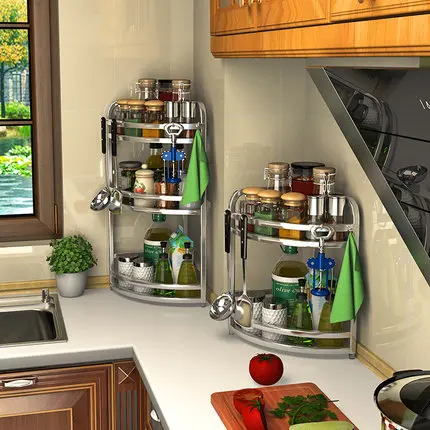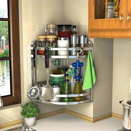 304 stainless steel kitchen rack wall hanging 3 layer corner frame spice rack seasoning tripod