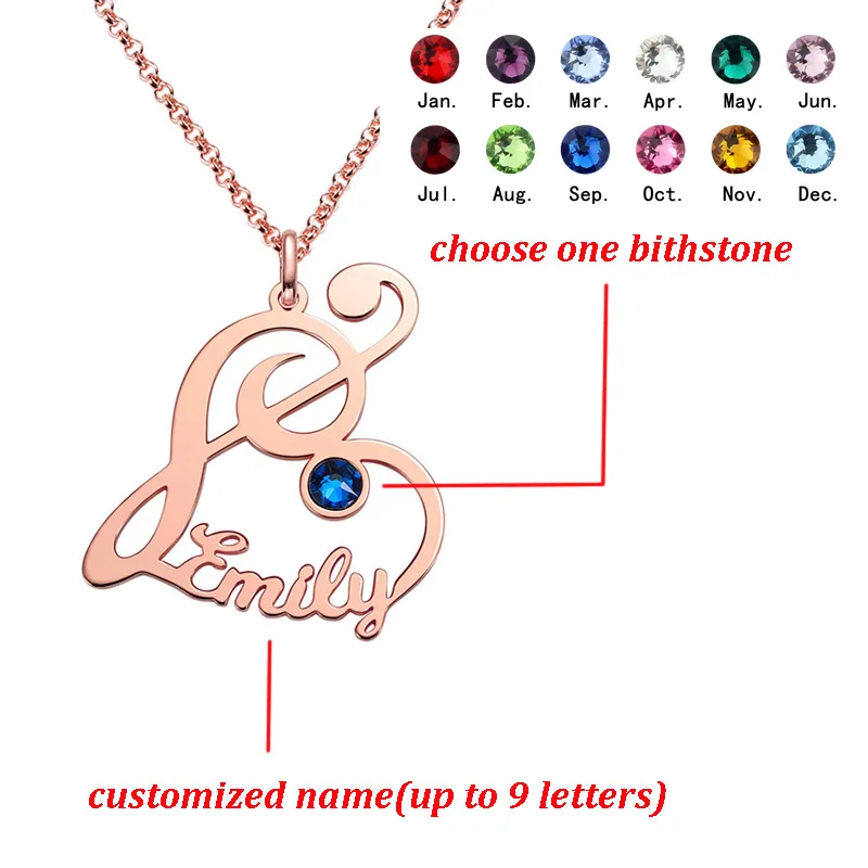 BEST AILIN Music Note Pendant Necklace Customized Name Necklace with Birthstone Personalized Women Jewel