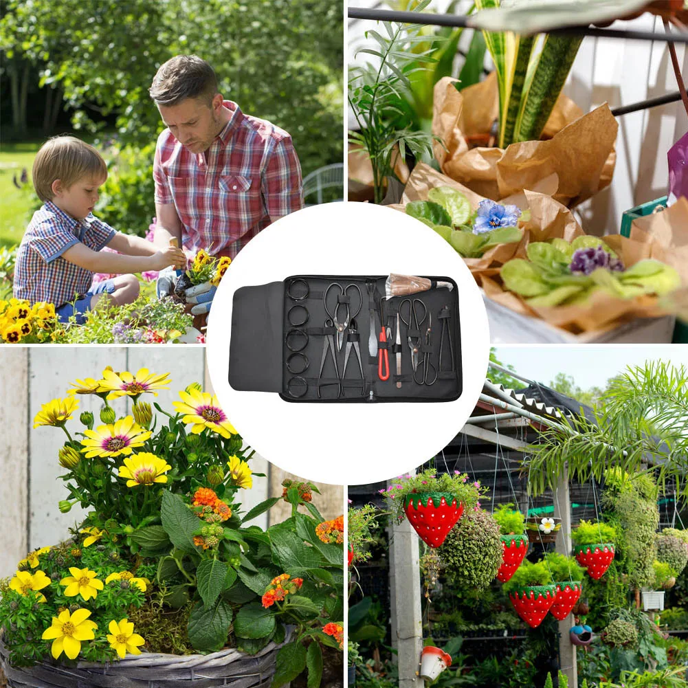 16Pcs Garden Bonsai Tool Set Carbon Steel Kit Cutter Scissors with Nylon Case CLH@8