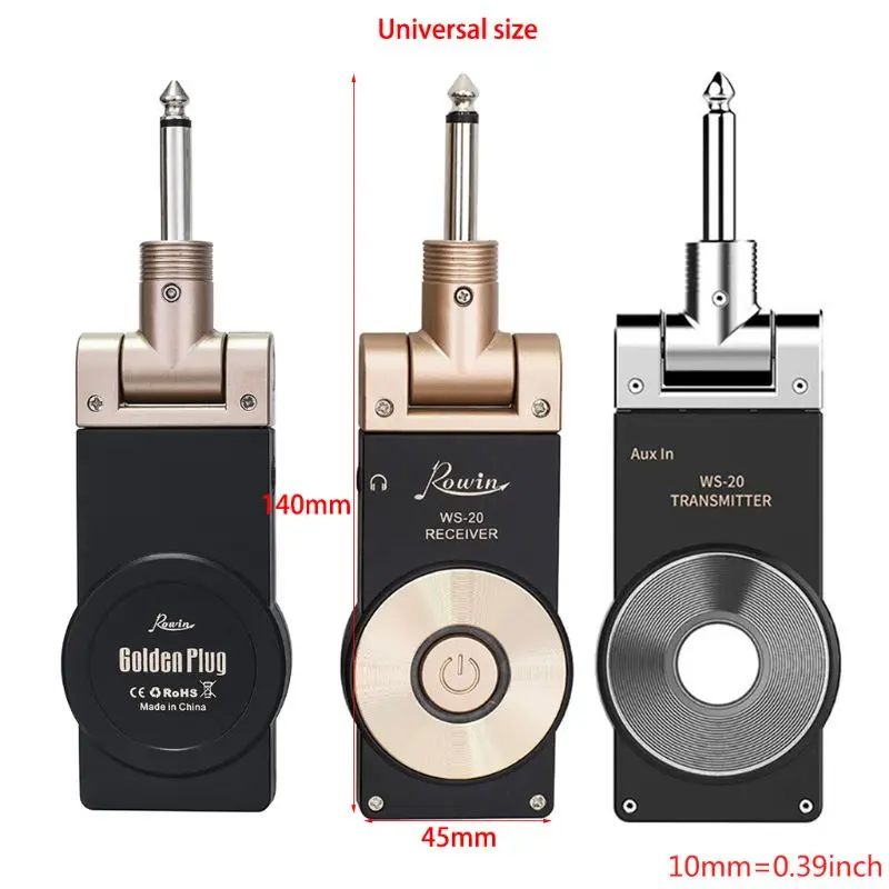 Rowin WS-20 2.4G Wireless Guitar System Rechargeable Lithium Battery Transmitter Receiver 30 Meters