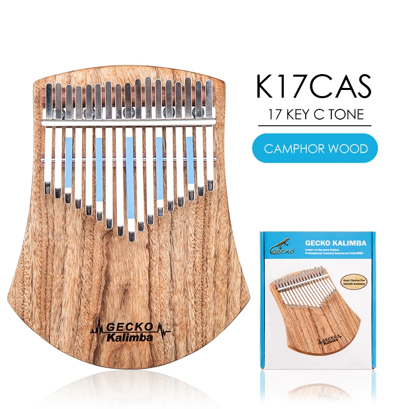 Best Seller B Tone GECKO Kalimba 17 Keys Solid Camphorwoodwith Instruction and Tune Hammer Portable Thumb Piano