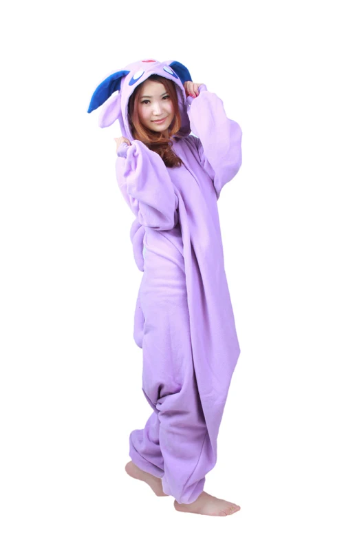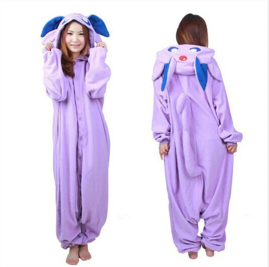 BEST Cartoon Adult Polar Fleece Women Men Anime Espeon Purple Unisex Onesie Cosplay Pajamas Jumpsuit Hal