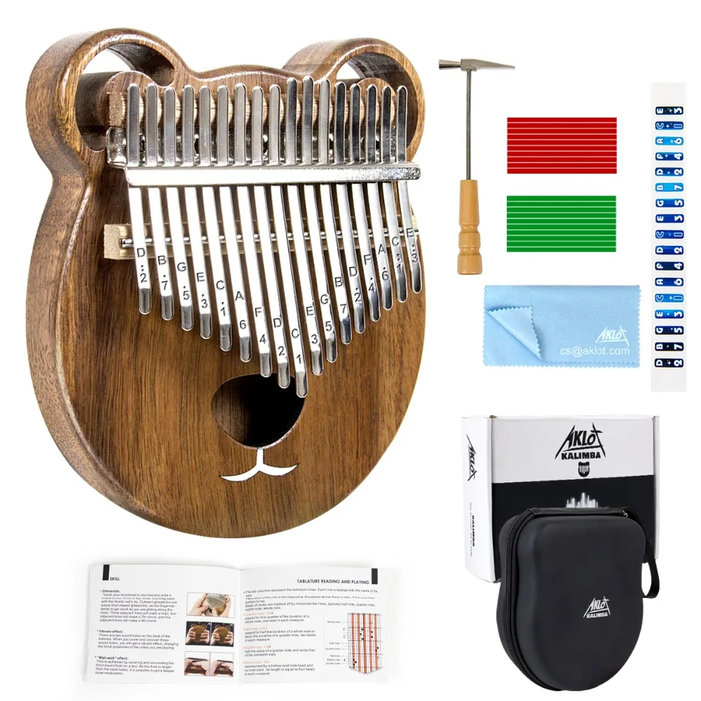 ORIGINAL Aklot 17 Key Kalimba Thumb Piano Solid Walnut Marimba Kit with Carry Case Bag Tuning Hammer Study B