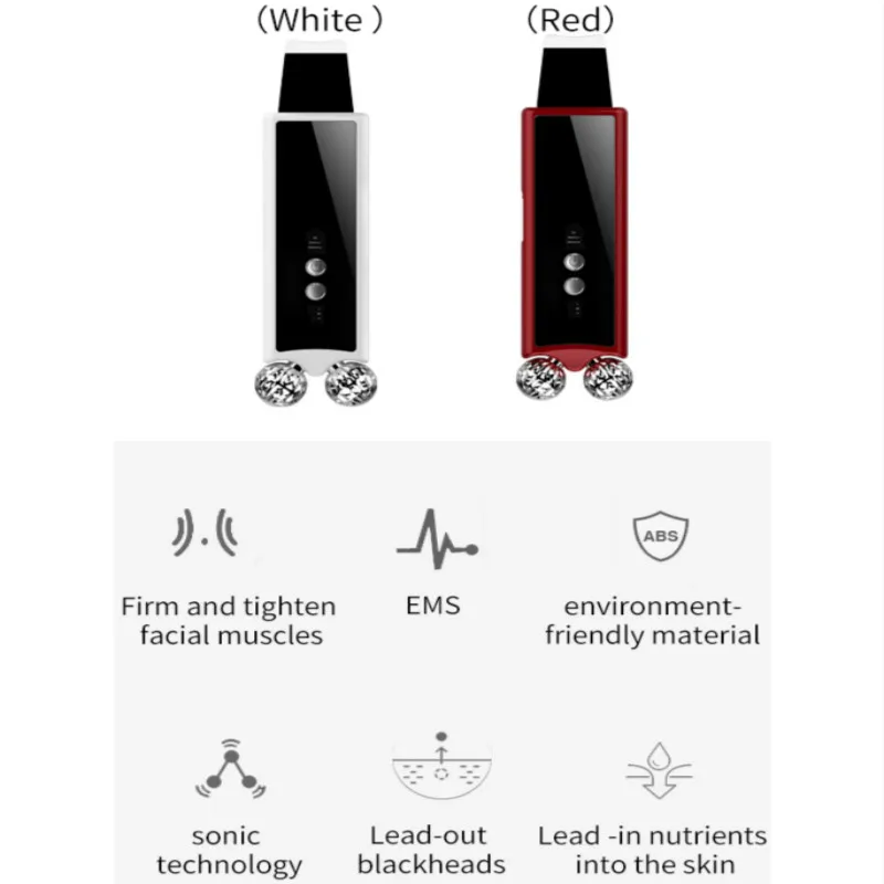 Ultrasonic Deep Face Cleaning Machine EMS Microcurrent Skin Scrubber 3D Manual Roller Face Lifting